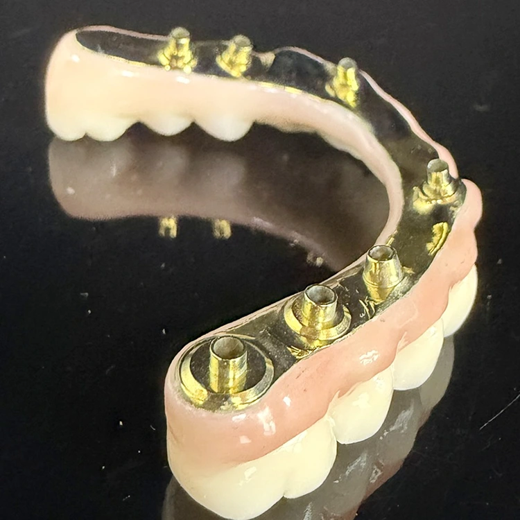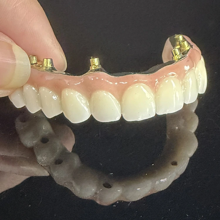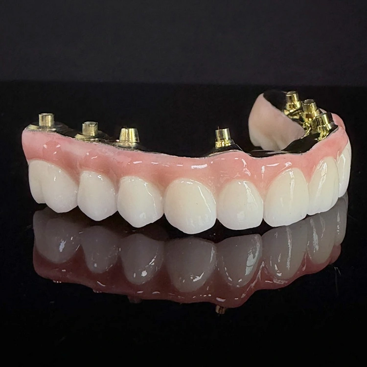 Хибриден имплант мост CADCAM забна протетика со целосна цирконија и титаниум, мост за пристапна дупка за корекција на агол, најдобро решение за проблем со вметнување. WM стоматолошка лабораторија од кинеската стоматолошка лабораторија обезбедува најдобро решение за мелење на целосниот лак имплант цирконски имплант мост
