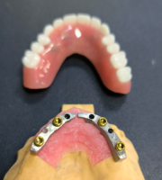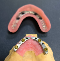 WM стоматолошка лабораторија реставрација на целосен лак CADCAM титаниум Ibar поставен со Локатор и отстранлив преку протеза, поделен раствор на шипки за невообичаен пат на вметнување